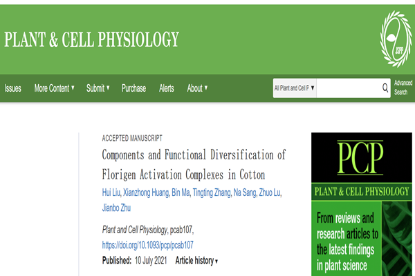 农学院黄先忠教授团队在棉花成花激素复合物组分与功能研究上取得了新进展
