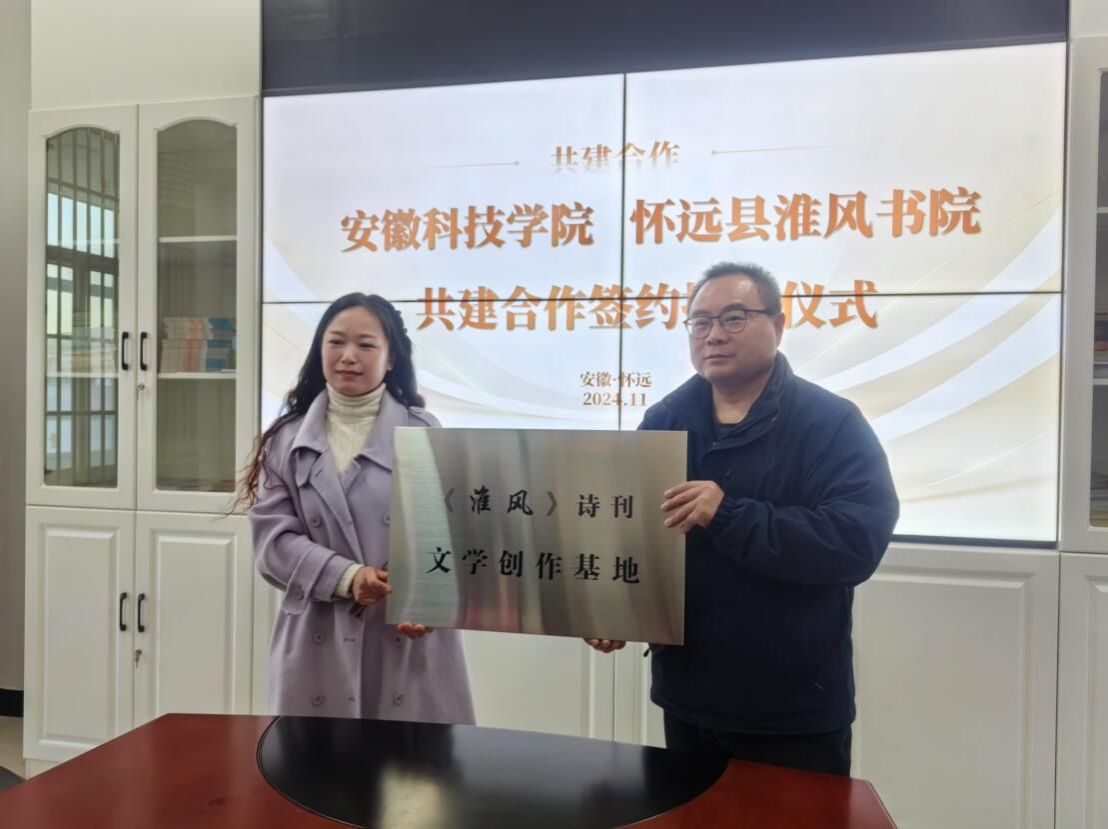 11月29日下午,足球官网与淮风书院在怀远县统战文化园举行共建合作签约暨授牌仪式。人文学院党委副书记、院长李晓东,正处级组织员张严政,中文系主任苏兆龙,淮风书院院长,《淮风》诗刊主编宫蔚国,编委潘洪波及怀远县地方文化学者苏文科、科普摄影家学会会长王智祥等出席本次活动。