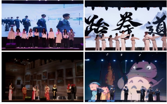 闭幕式晚会分为“自信”“开放”“青春”“梦想”四个篇章,形式丰富多样,内容积极向上,编排富有创新,通过不同的表演形式,彰显大学生青春风采,为在场的观众献上了一场视听盛宴。独具特色的话剧《地球博物馆》让文物“活”了起来,彰显了强大民族自信,拉开了晚会表演的序幕;民族舞《山水寄清音》,舞者身着精美的民族服饰,随着悠扬的音乐翩翩起舞,让观众沉浸在中华优秀传统文化的魅力之中;口琴表演《宫崎骏组曲》完美地演绎了宫崎骏动画中的经典曲目;韩语歌曲《阵雨》充满了青春的活力和正能量;《墨武风华》跆拳道表演每一个动作都刚劲有力、干脆利落;小合唱《光》唱出了对青春的赞美和对未来的憧憬;英文脱口秀《黑神话悟空》将热门游戏《黑神话:悟空》中的精彩情节和独特文化元素进行了生动的讲述,展示了大学生扎实的英语语言能力。晚会在《有我》《如愿》等组成的歌曲串烧中落下帷幕。