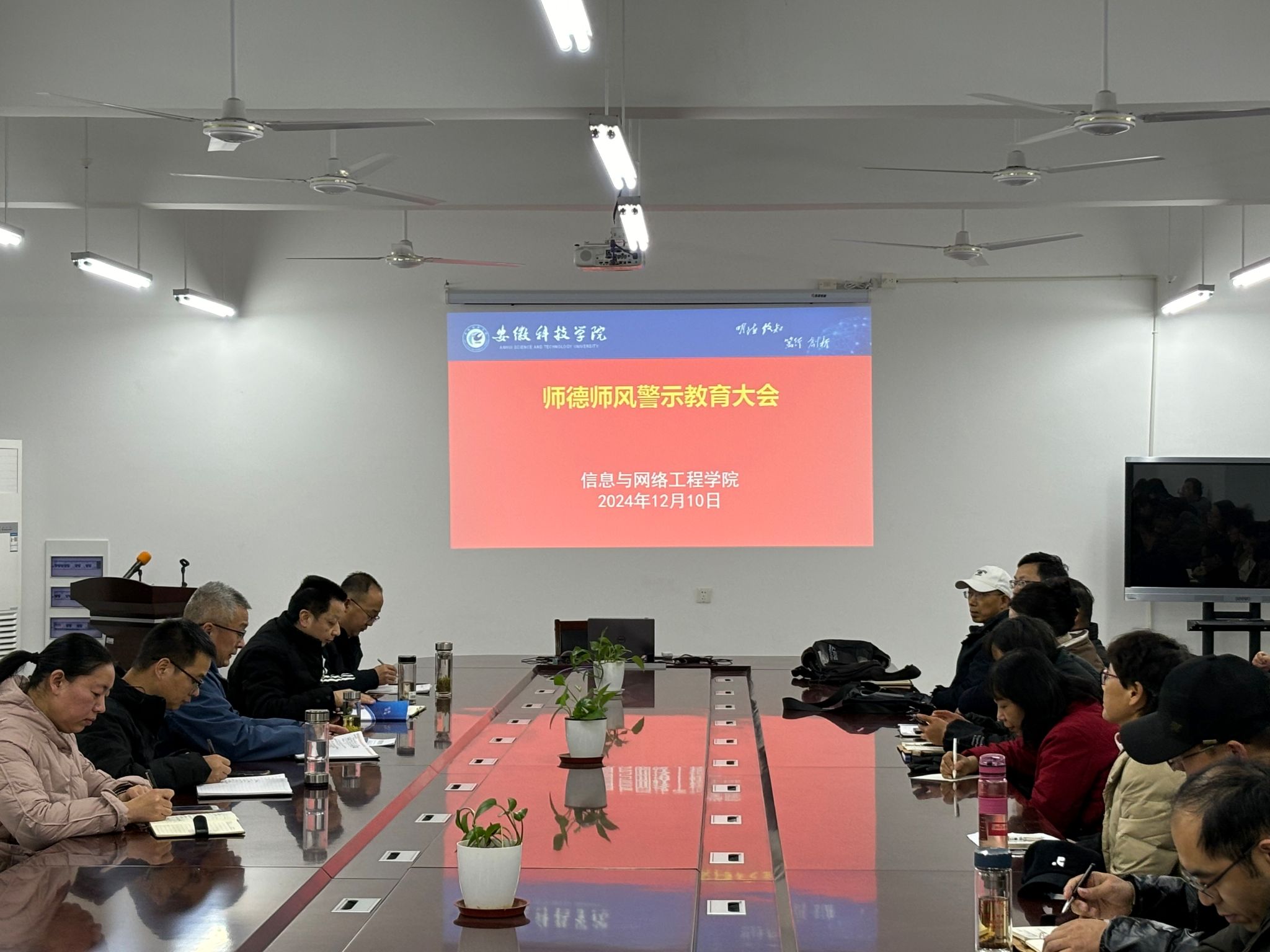 为进一步做好师德师风建设工作,12月10日下午,信息与网络工程学院在尚行楼B418会议室召开师德师风警示教育大会,学院全体教职工参加会议,会议由学院党委书记王振其主持。
